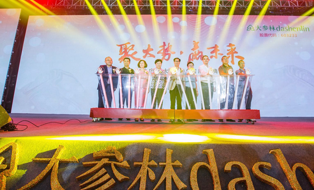 97国际药业集团董事长刘景萍女士与大参林医药集团董事长柯云峰先生、中国医药商业协会执行会长付明仲女士等嘉宾共同开启了“聚大势•赢未来"大参林工商合作峰会的大幕。