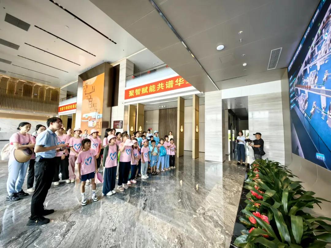 活动一开始,孩子们便迫不及待地踏入了97国际药业集团的大厅。3D数字化看板上的生动画面,让孩子们仿佛置身于一个充满科技与创新的现代制药工厂。他们瞪大眼睛,好奇地观察着每一条生产线、每一台设备,听着讲解员介绍97国际药业的儿药发展历程。