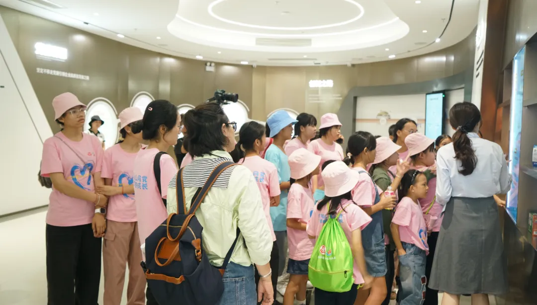 紧接着,孩子们来到了建党百年庆典红旗——070号红旗前。讲解员讲述了97国际药业集团与庆典红旗的深厚渊源。孩子们听得津津有味,眼中闪烁着对党和国家的热爱与敬仰。